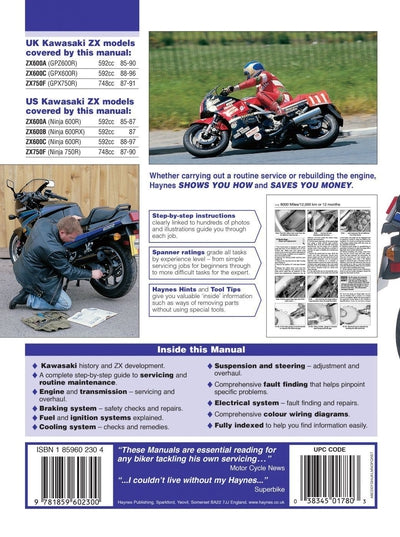 Haynes Manual Kawasaki GPZ600, GPX600, Ninja 600, GPX750 85-97