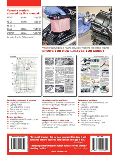 Haynes Manual Yamaha MT-07 Tracer & XSR 14-17