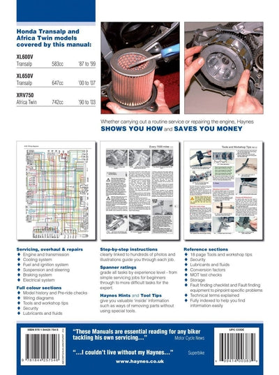 Haynes Manual Honda XL600V, XL650V Transalp 87-07, XRV750 90-02